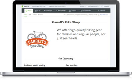 Quickly document different business ideas in a beautiful visual format with the LivePlan One-Page Pitch.